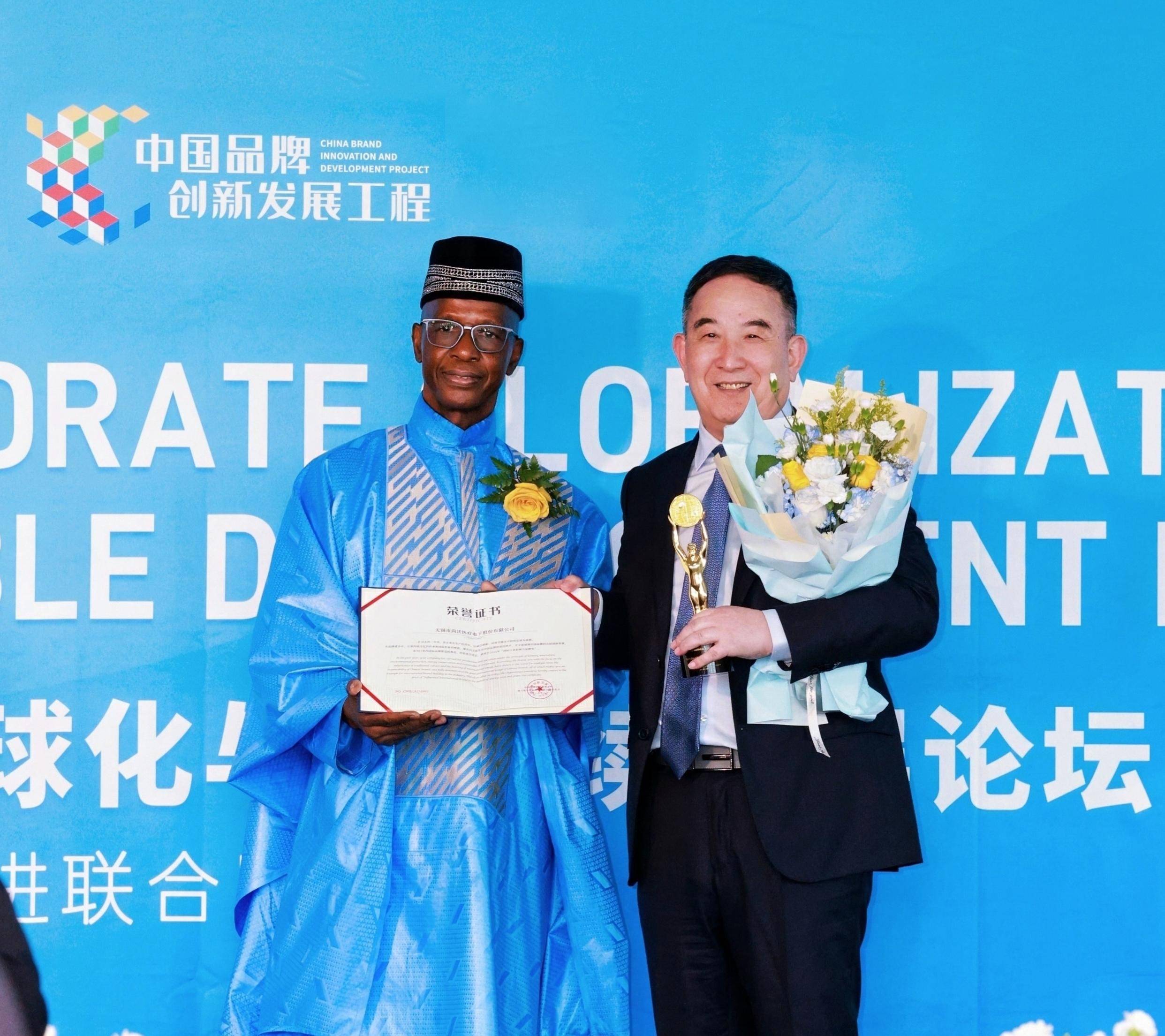 联大主席原新闻发言人吉布里尔・迪亚洛在论坛上发言,并为无锡市尚沃医疗电子股份有限公司颁发了“国际行业影响力品牌奖”荣誉奖杯。
