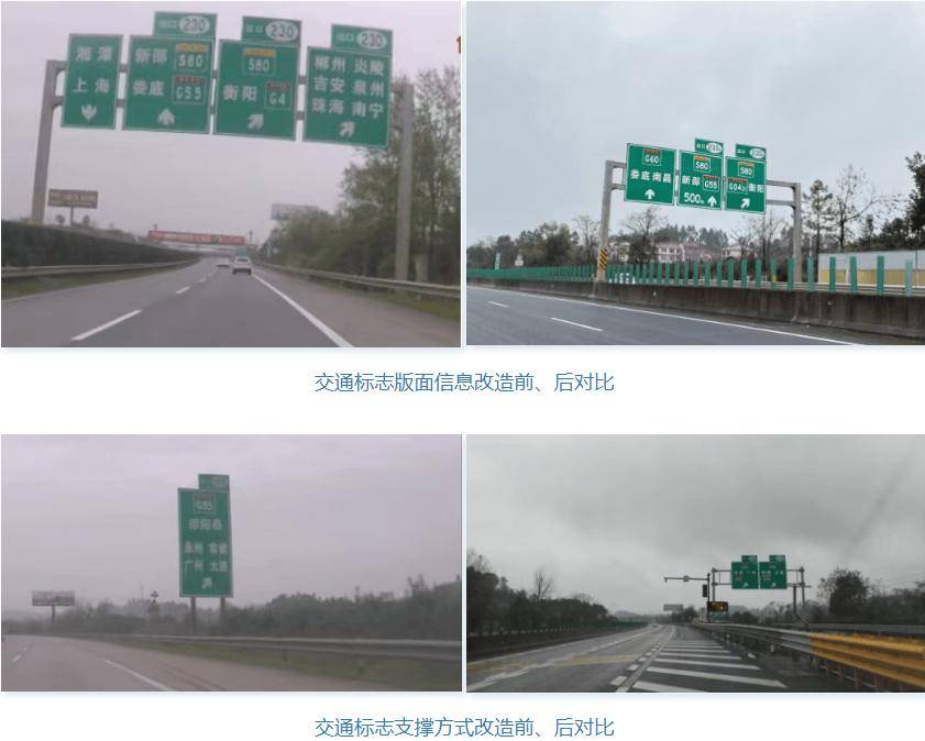 科学规范指引方面,对标志信息选取不当、信息过载或不满足规范要求的进行换膜、换板,重点互通立交更换门架式支撑结构;对脱落严重、逆反射系数不足的标线进行补划。